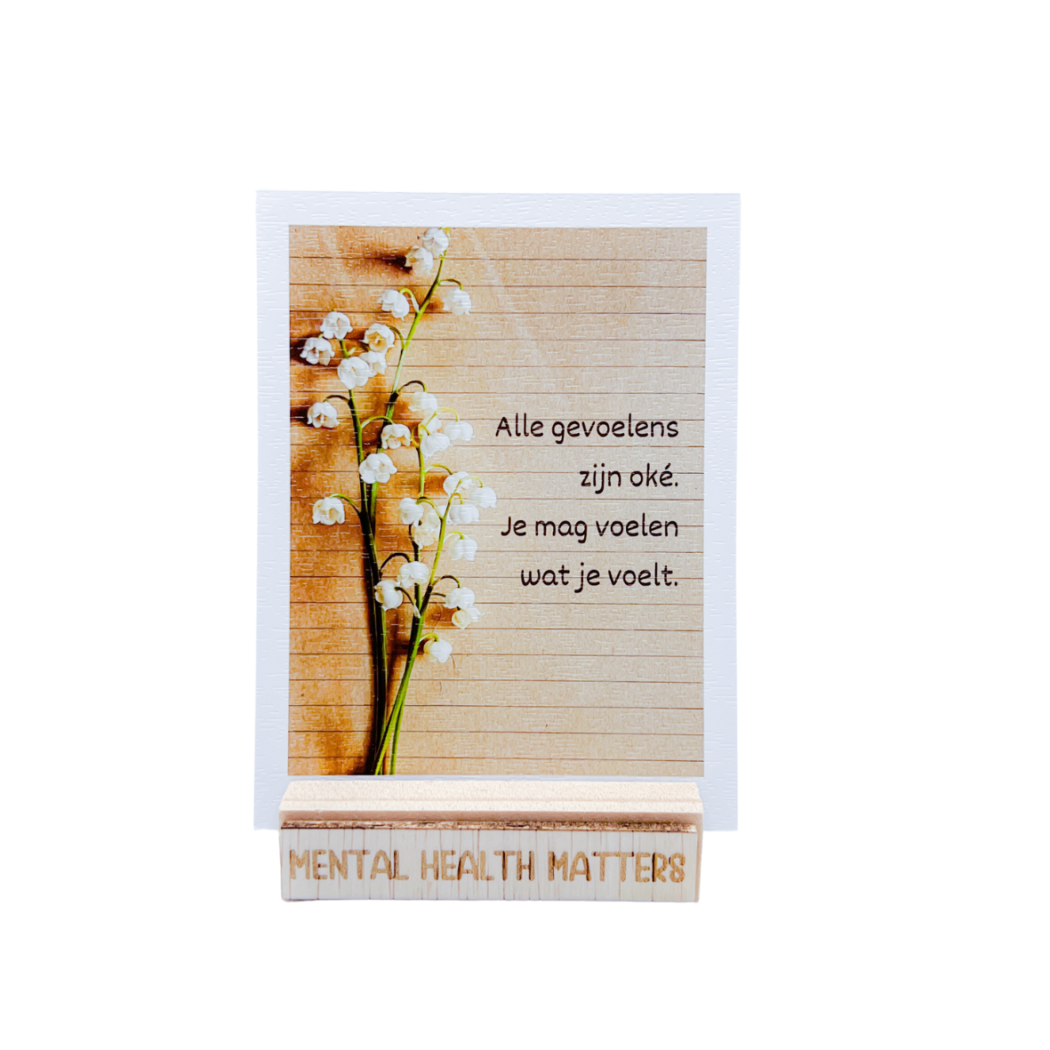 Ze hebben precies de juiste afmetingen om perfect in het "Mental Health Matters" houdertje te passen. Zo kun je eenvoudig de kaart neerzetten die op dat moment het beste bij je past. Klik hier voor het houdertje.