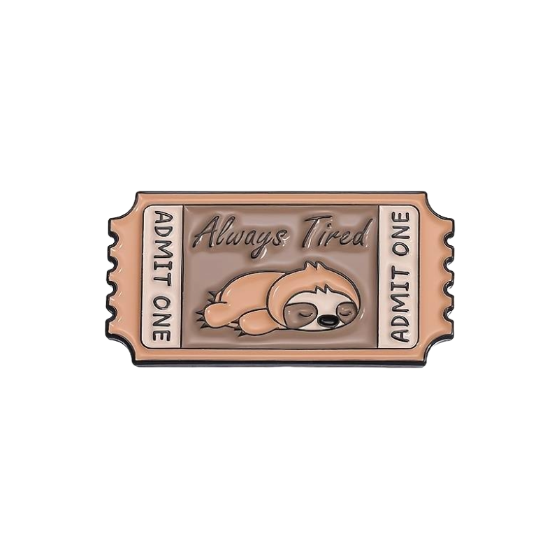 Draag de pin met trots als een herinnering aan jouw kracht, een knipoog naar jezelf en aan anderen dat het oké is om toe te geven aan de vermoeidheid.