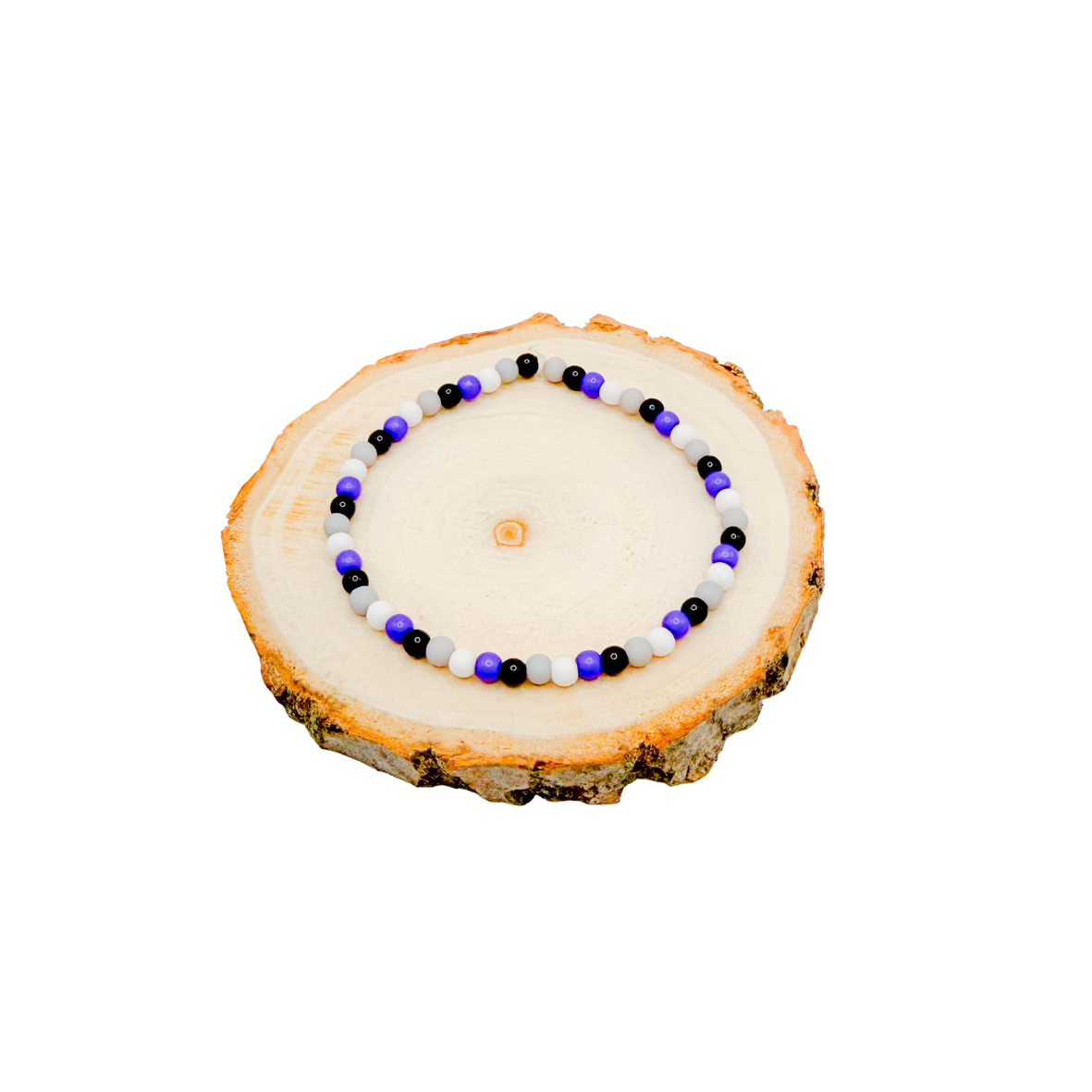 Deze armband is in de kleuren van de aseksuele vlag en staat symbool voor zichtbaarheid binnen de LGBTQ+ community.