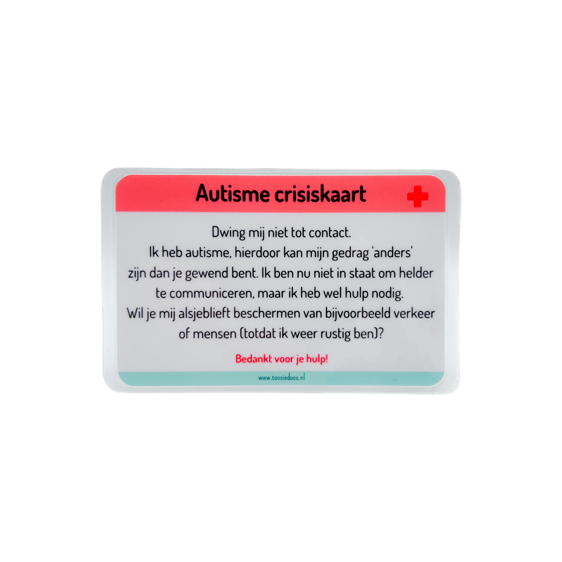 Deze autisme kaart is een hulpmiddel voor je dagelijks leven. Als je een meltdown of shutdown krijgt en communiceren niet meer lukt.