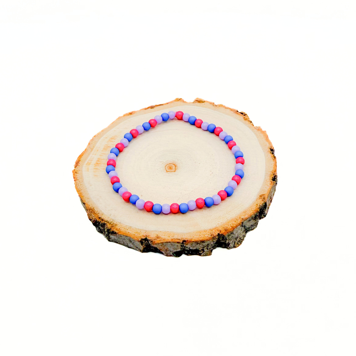 De armband is gemaakt van lichte acryl kralen en draagt comfortabel dankzij het elastiek. Er zijn twee maten beschikbaar – je vindt de maattabel in de laatste foto.