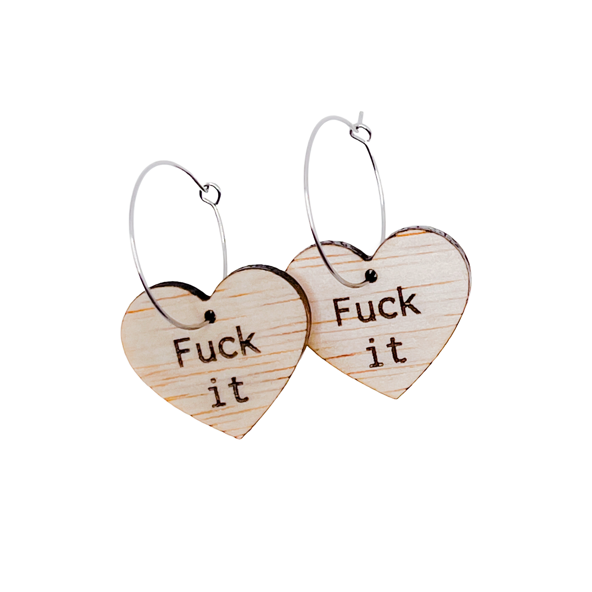 Unieke handgemaakte houten oorbellen! Fuck it, een tekst die voor veel situaties best heel passend is.
