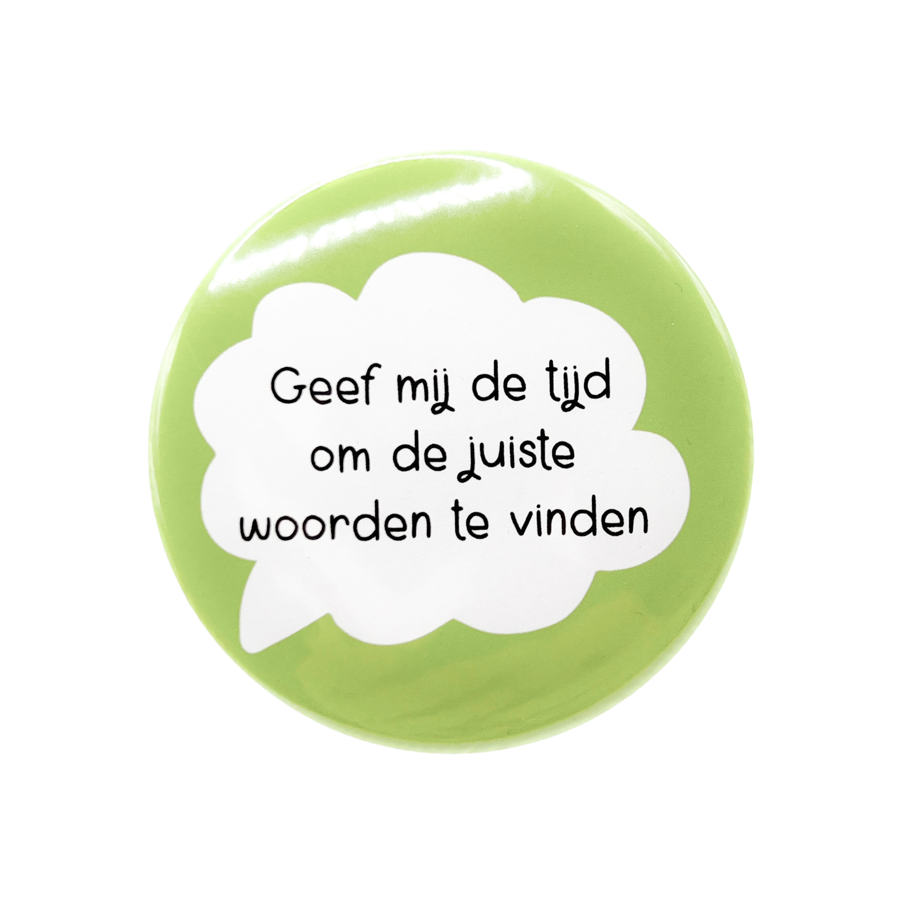 Button geef mij de tijd om de juiste woorden te vinden. Deze hulp button kan je helpen in het dagelijks leven. Simpel maar effectief.