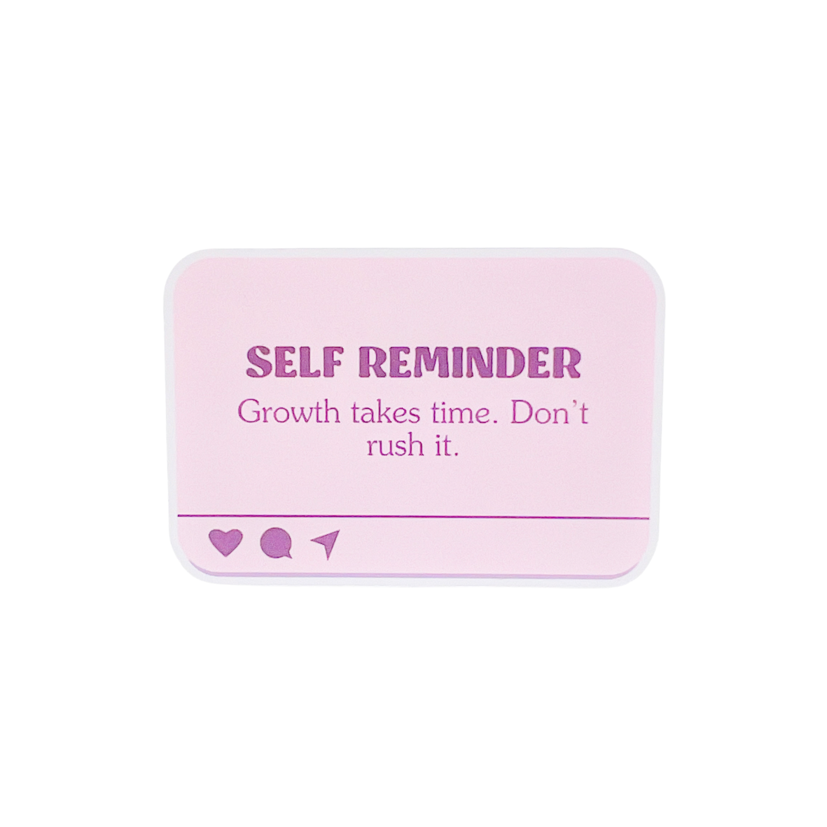 Sticker in de vorm van een social media post. Met de tekst ''growth takes time, don't rush it''.