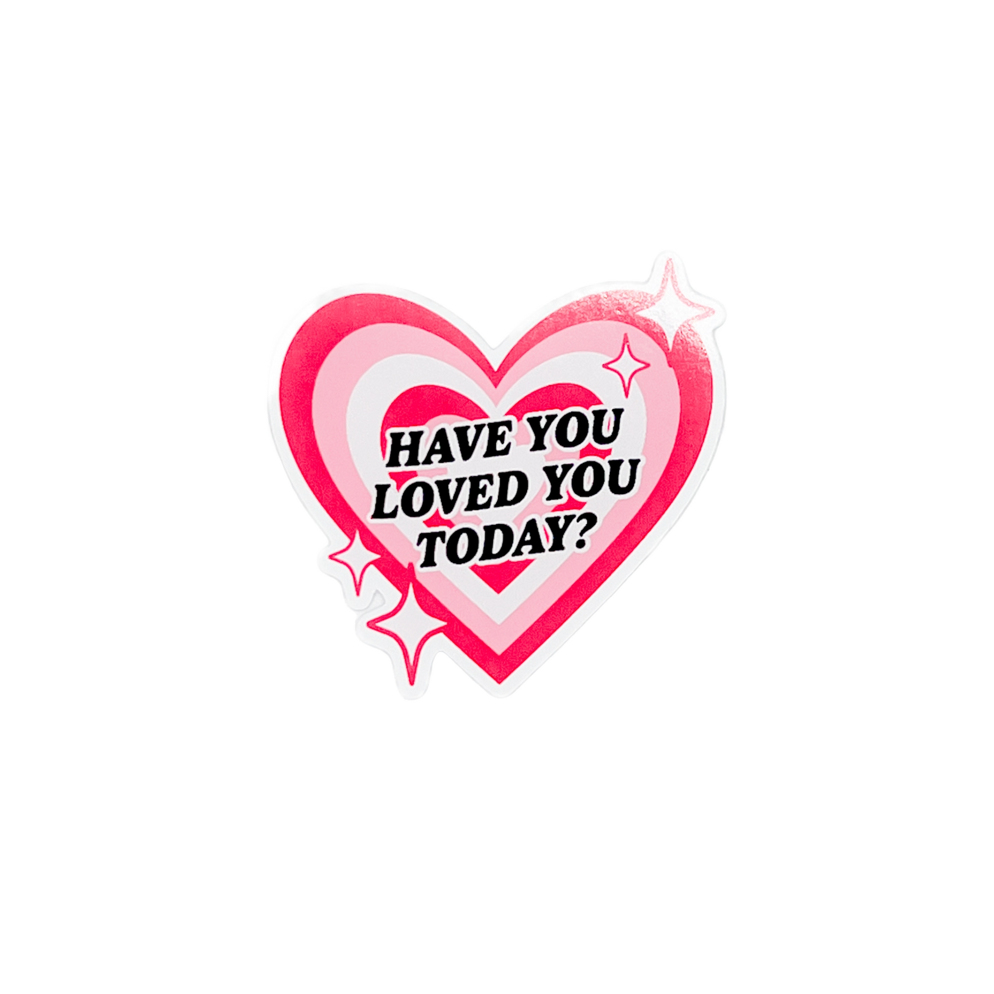 Hartvormige sticker in roze tinten met de tekst ''Have you loved you today?''