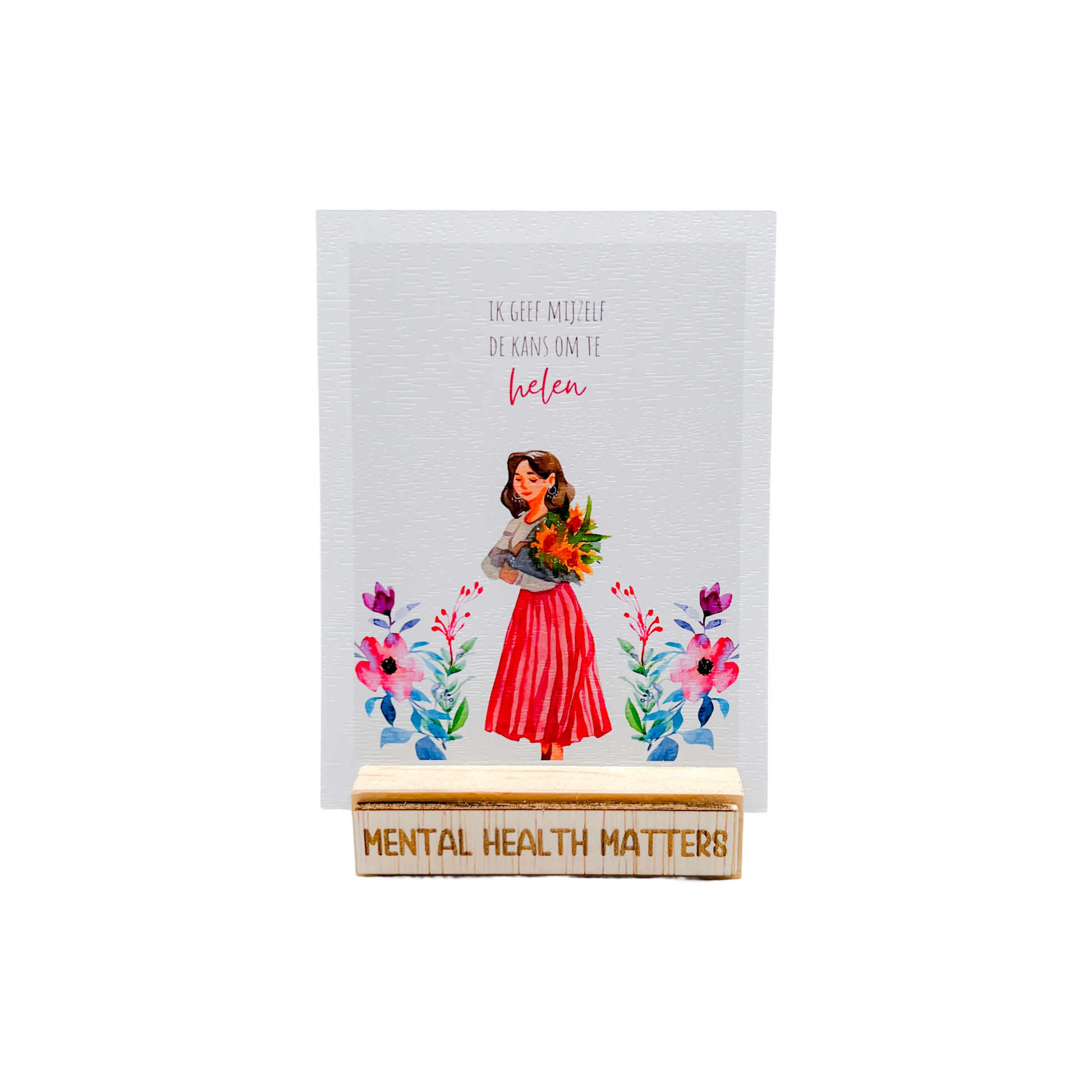 Ze hebben precies de juiste afmetingen om perfect in het "Mental Health Matters" houdertje te passen. Zo kun je eenvoudig de kaart neerzetten die op dat moment het beste bij je past. Klik hier voor het houdertje.
