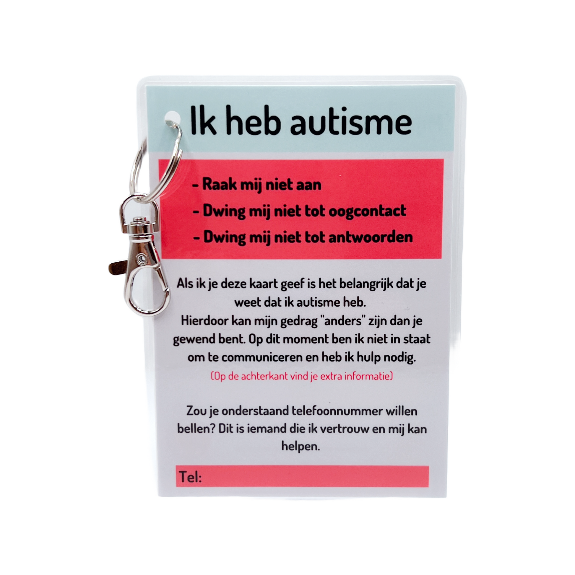 Deze autisme kaart is een hulpmiddel voor je dagelijks leven. Als je een meltdown of shutdown krijgt en communiceren niet meer lukt.