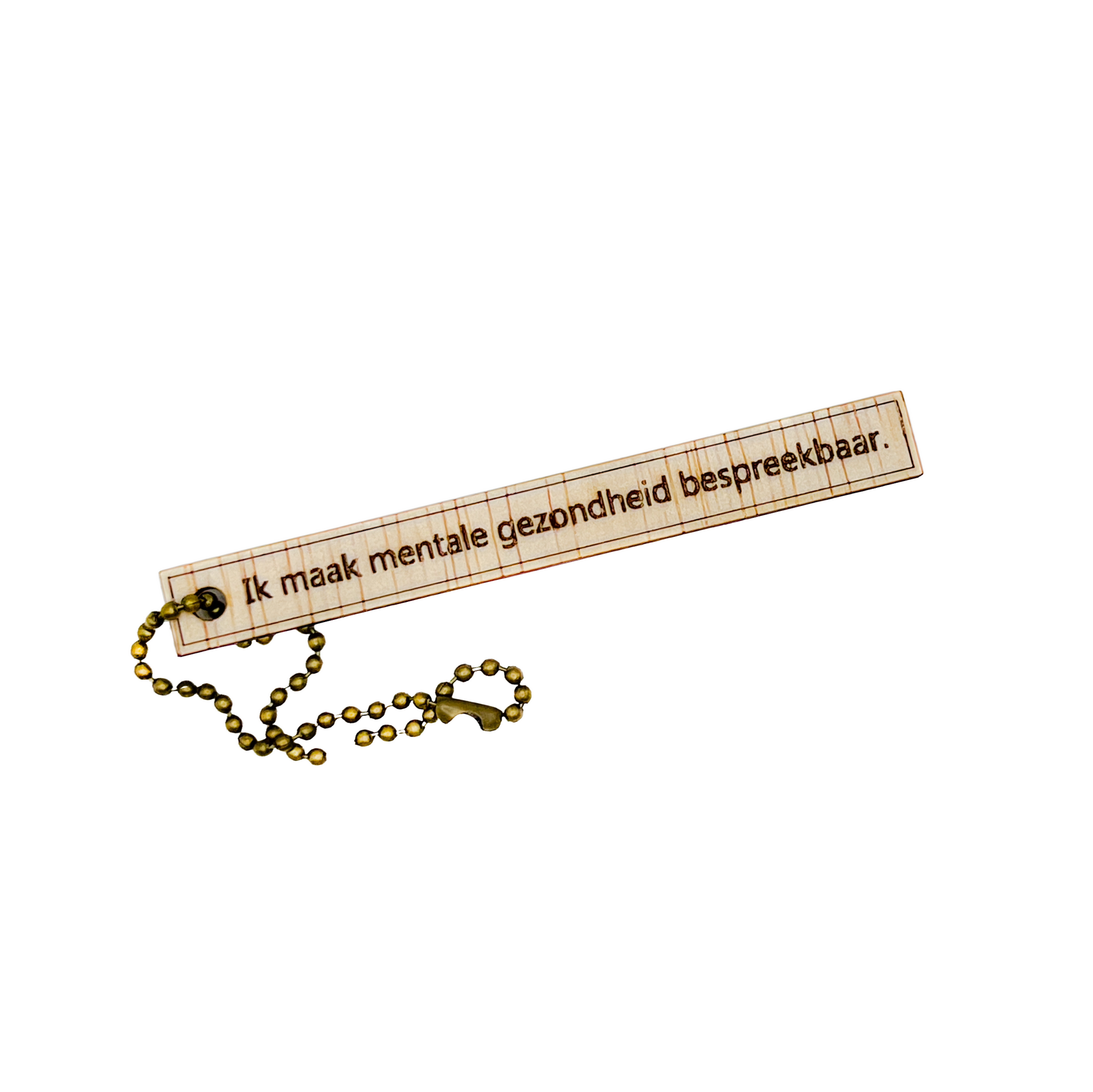 Maak jij mentale gezondheid bespreekbaar en wil je dit ook duidelijk maken aan de buitenwereld? Dan is deze hanger wat voor jou! Maak hem aan je tas, sleutels of waar je dan ook wilt! Gemaakt van 3mm hout, tekst is gegraveerd en de hanger is afgewerkt met een hout olie.