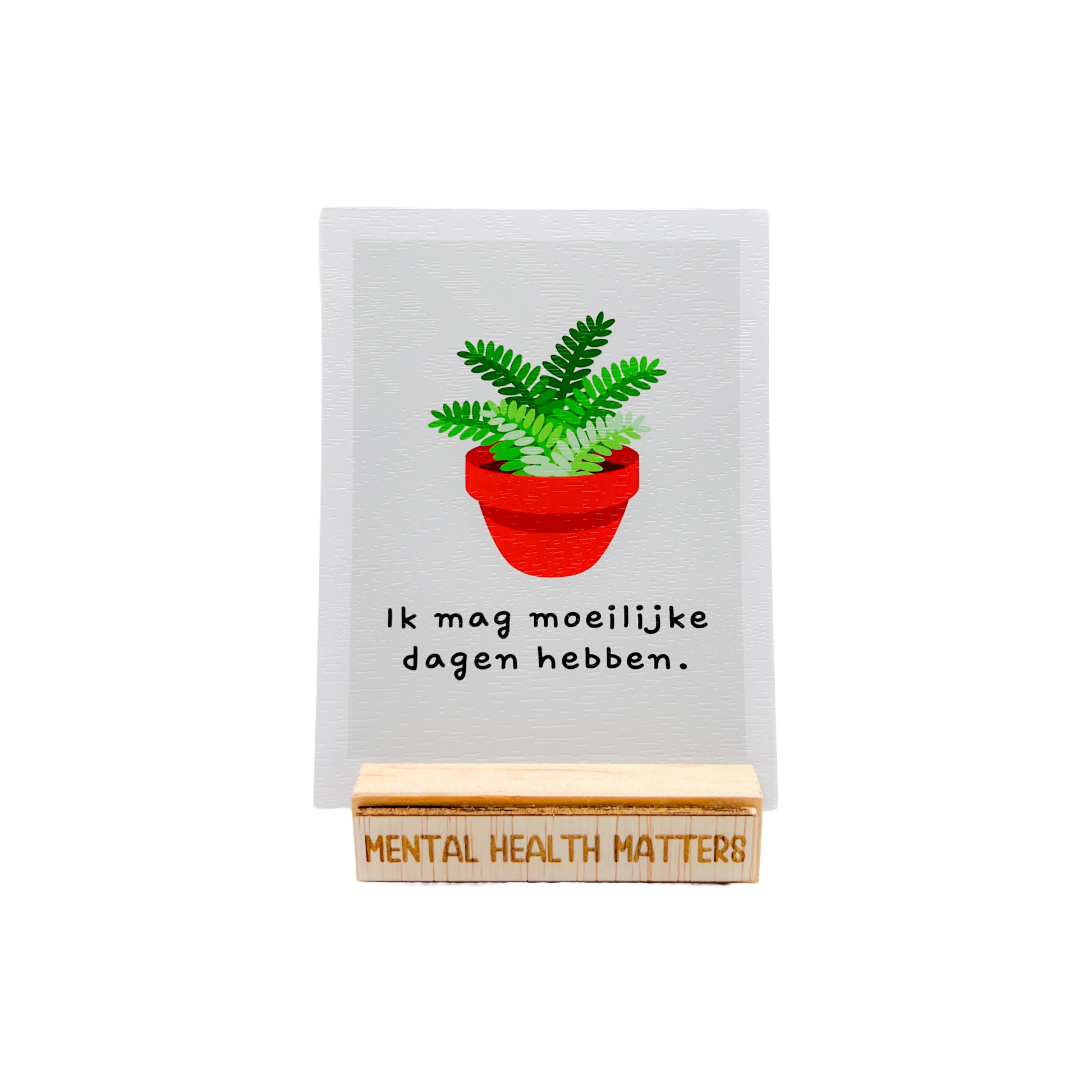 Ze hebben precies de juiste afmetingen om perfect in het "Mental Health Matters" houdertje te passen. Zo kun je eenvoudig de kaart neerzetten die op dat moment het beste bij je past. Klik hier voor het houdertje.