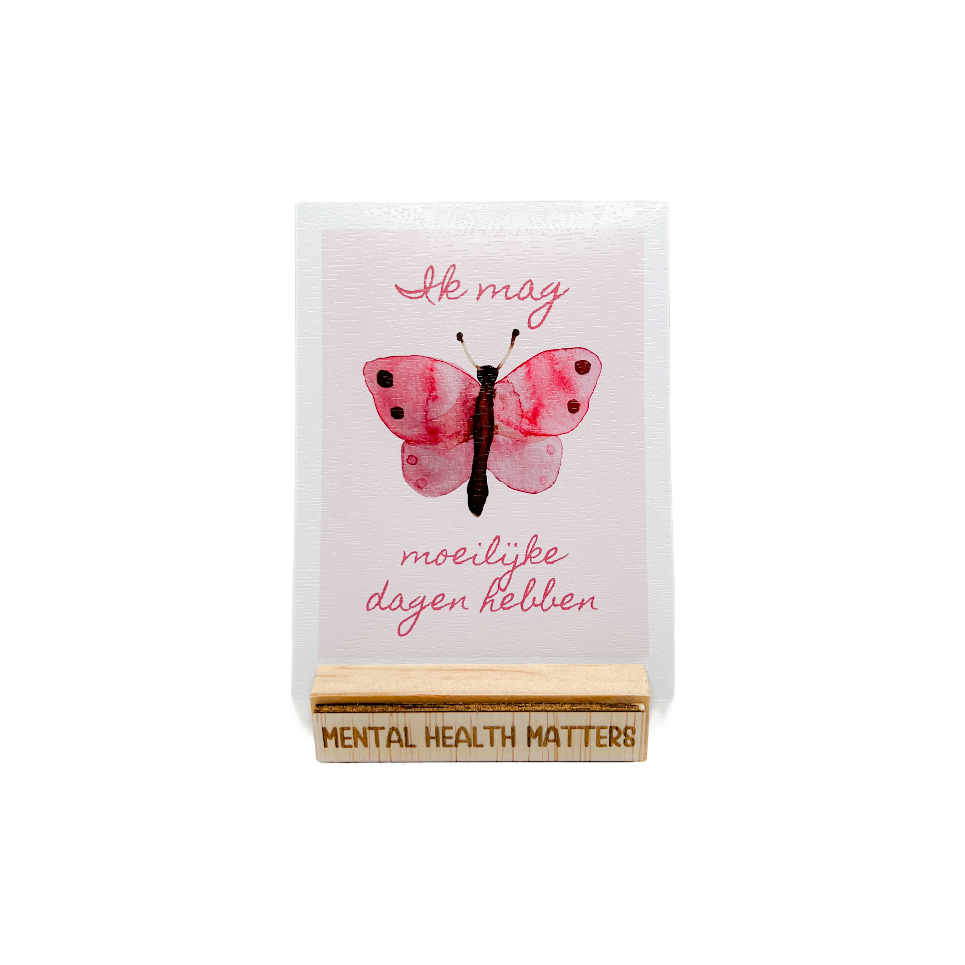 Ze hebben precies de juiste afmetingen om perfect in het "Mental Health Matters" houdertje te passen. Zo kun je eenvoudig de kaart neerzetten die op dat moment het beste bij je past. Klik hier voor het houdertje.