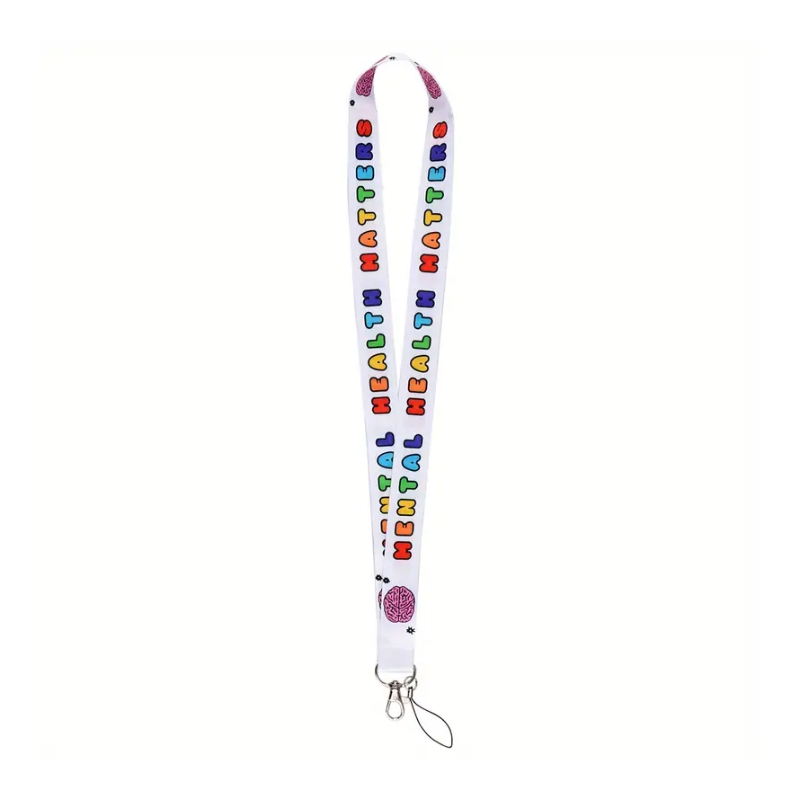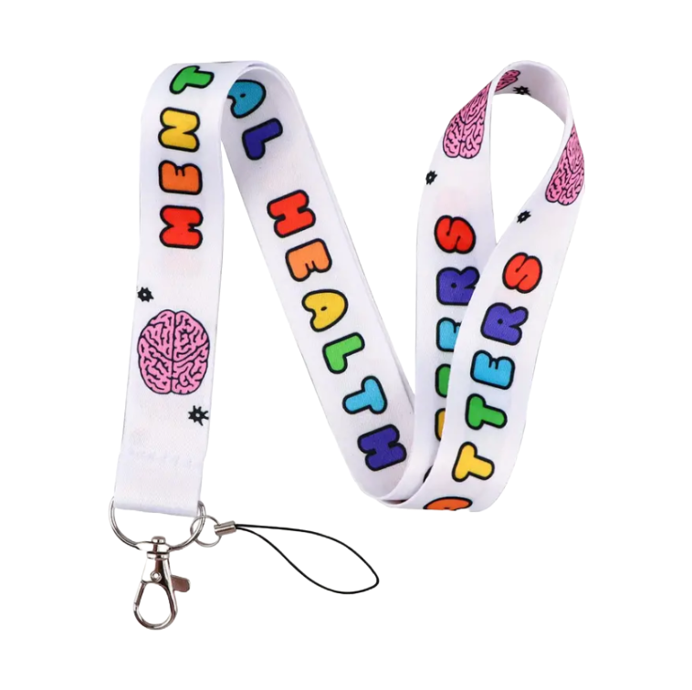 Keycord met de tekst 'mental health matters' in regenboog kleuren. Voor je sleutels, aan je tas of voor jouw hulpkaart (ook te koop bij Toosiedoos, klik hier).