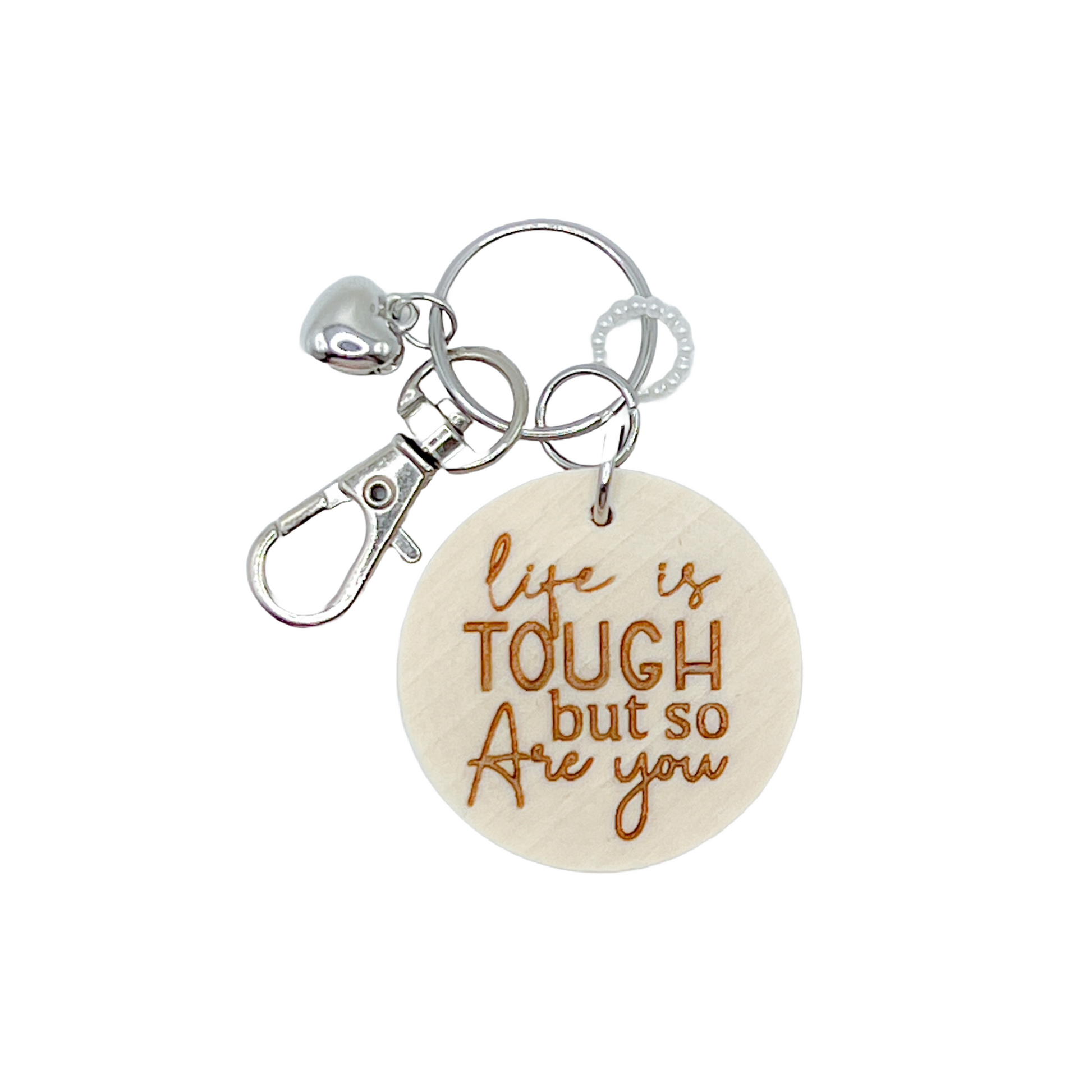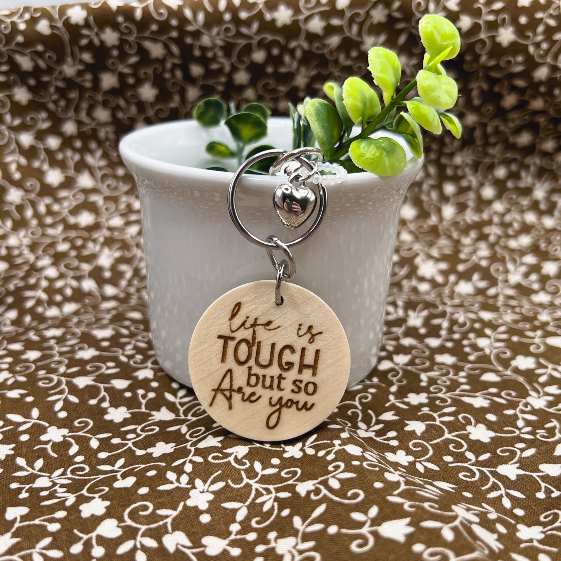 Deze houten sleutelhanger met de woorden "Life is Tough But So Are You" is een kleine maar krachtige reminder dat je meer aankunt dan je denkt. De gegraveerde tekst geeft je moed, precies wanneer je die nodig hebt.