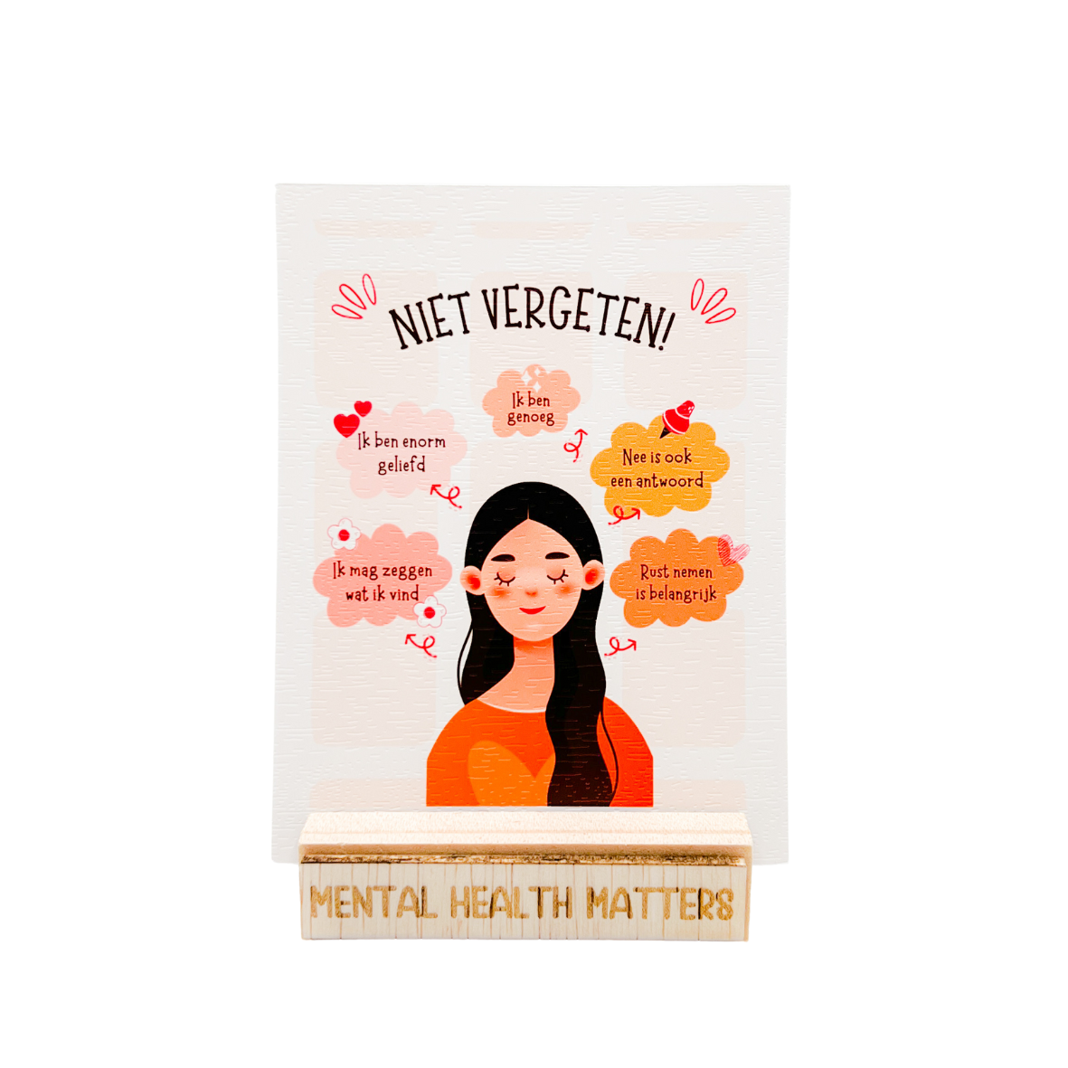 Ze hebben precies de juiste afmetingen om perfect in het "Mental Health Matters" houdertje te passen. Zo kun je eenvoudig de kaart neerzetten die op dat moment het beste bij je past. Klik hier voor het houdertje.