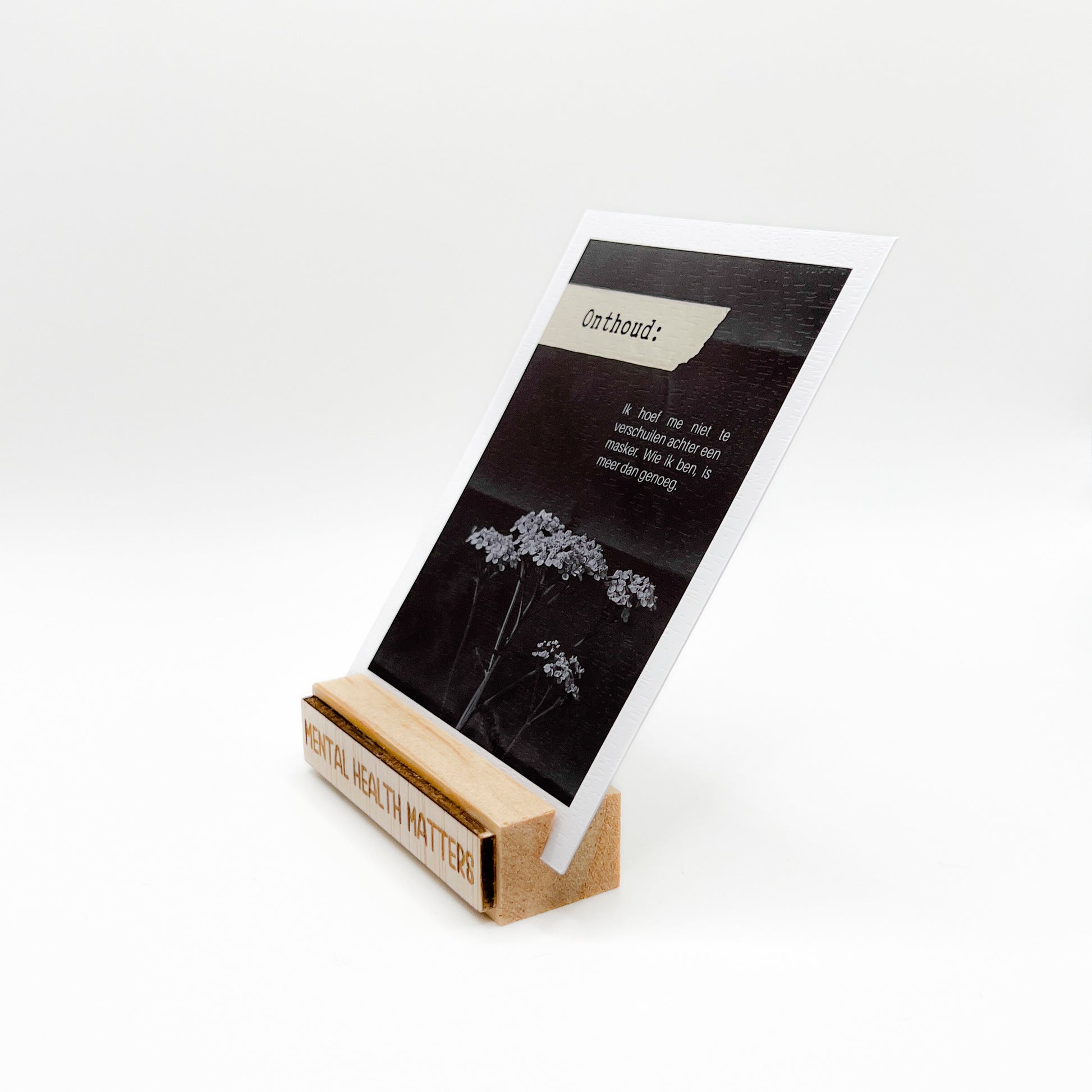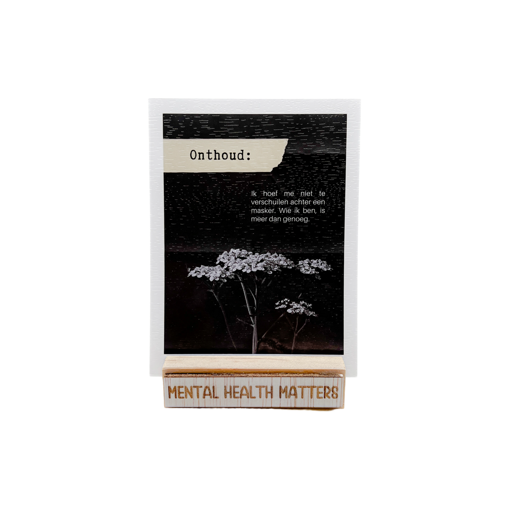 Ze hebben precies de juiste afmetingen om perfect in het "Mental Health Matters" houdertje te passen. Zo kun je eenvoudig de kaart neerzetten die op dat moment het beste bij je past. Klik hier voor het houdertje.