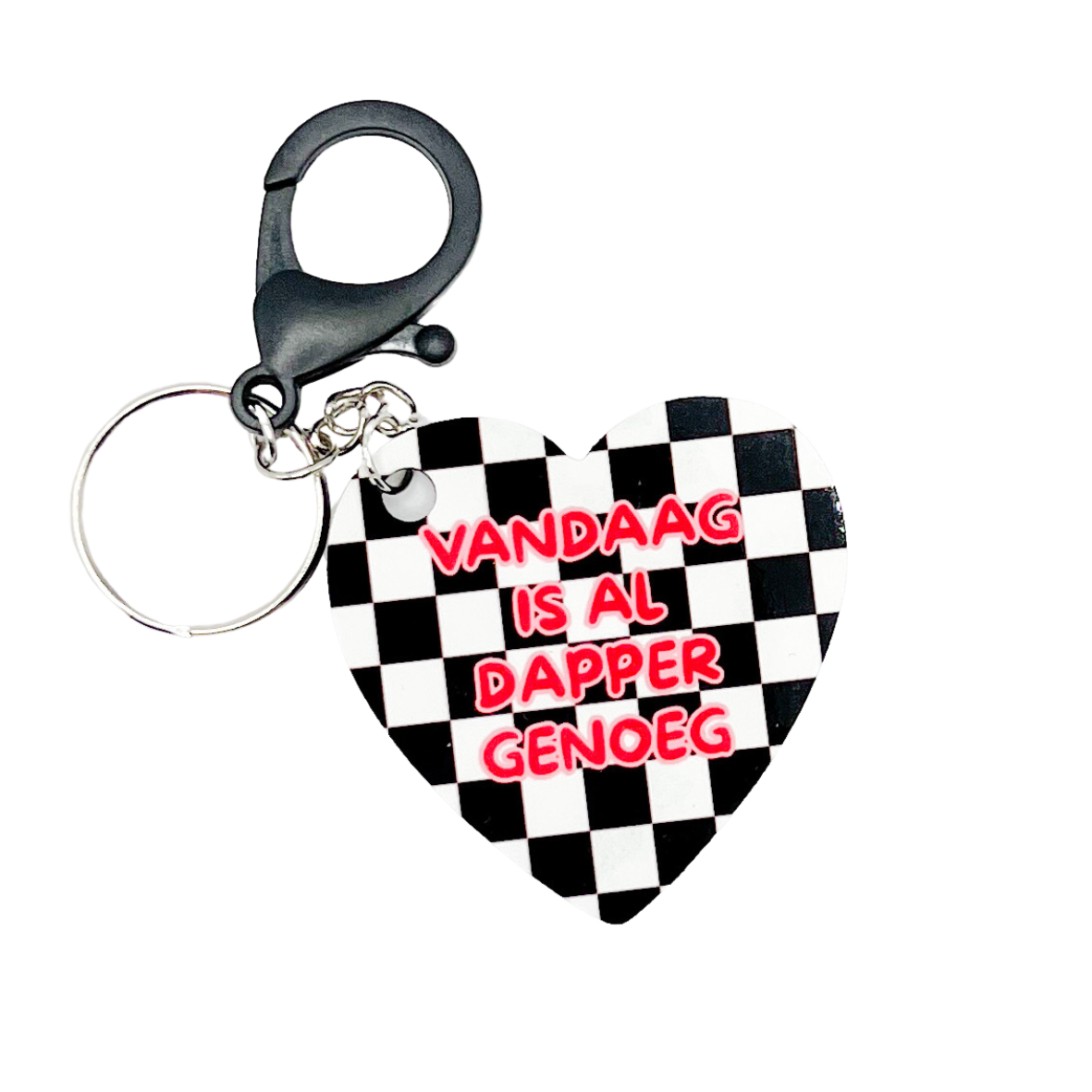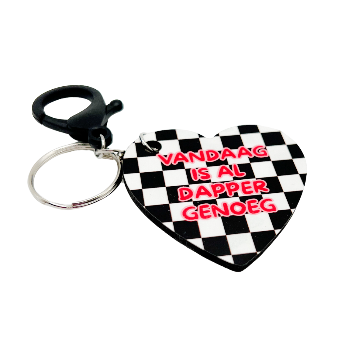 Deze hartvormige sleutelhanger met zwart-wit geblokt patroon en roze letters helpt je herinneren dat het oké is om het rustig aan te doen. Je hoeft niet altijd sterk te zijn – soms is opstaan en doorgaan al een overwinning.