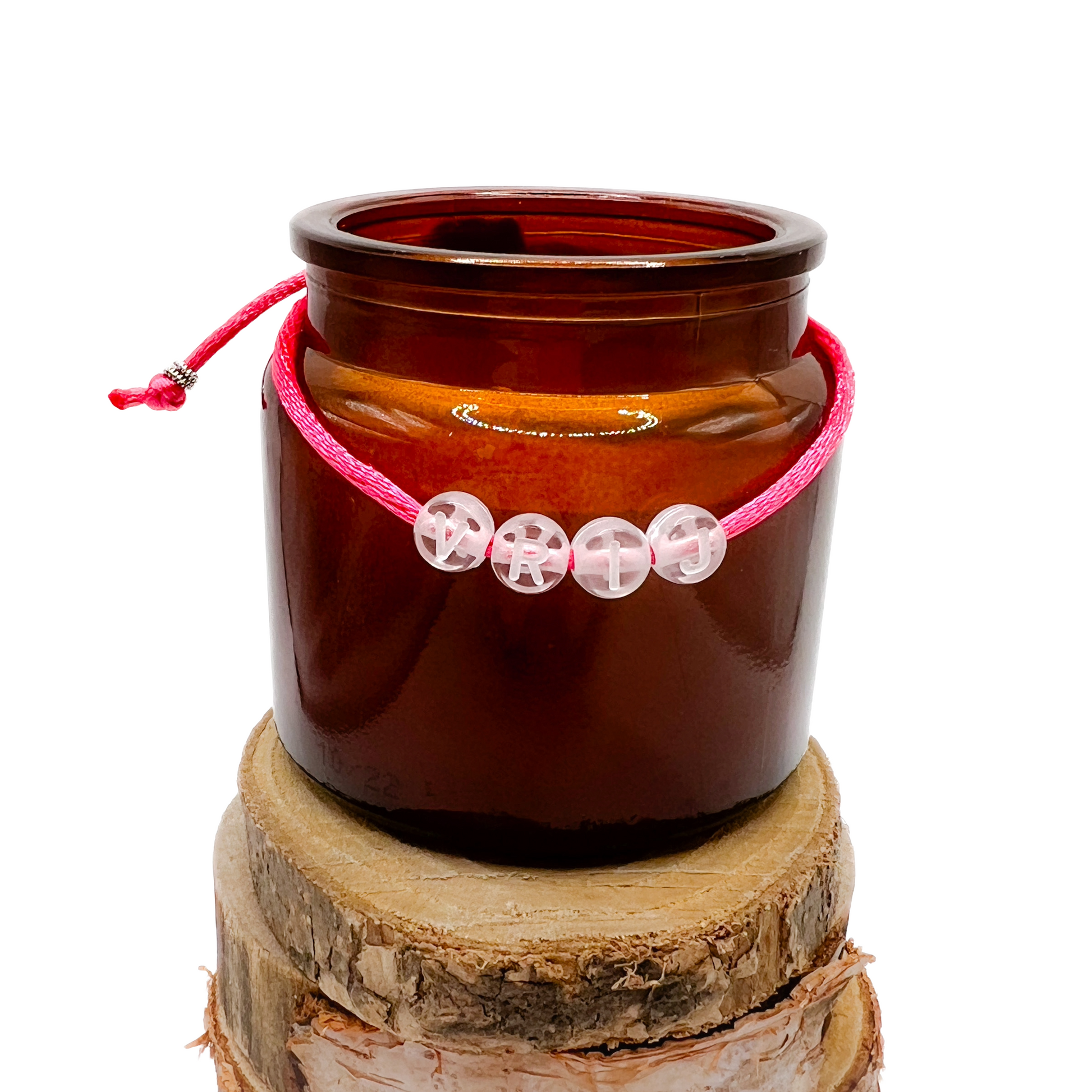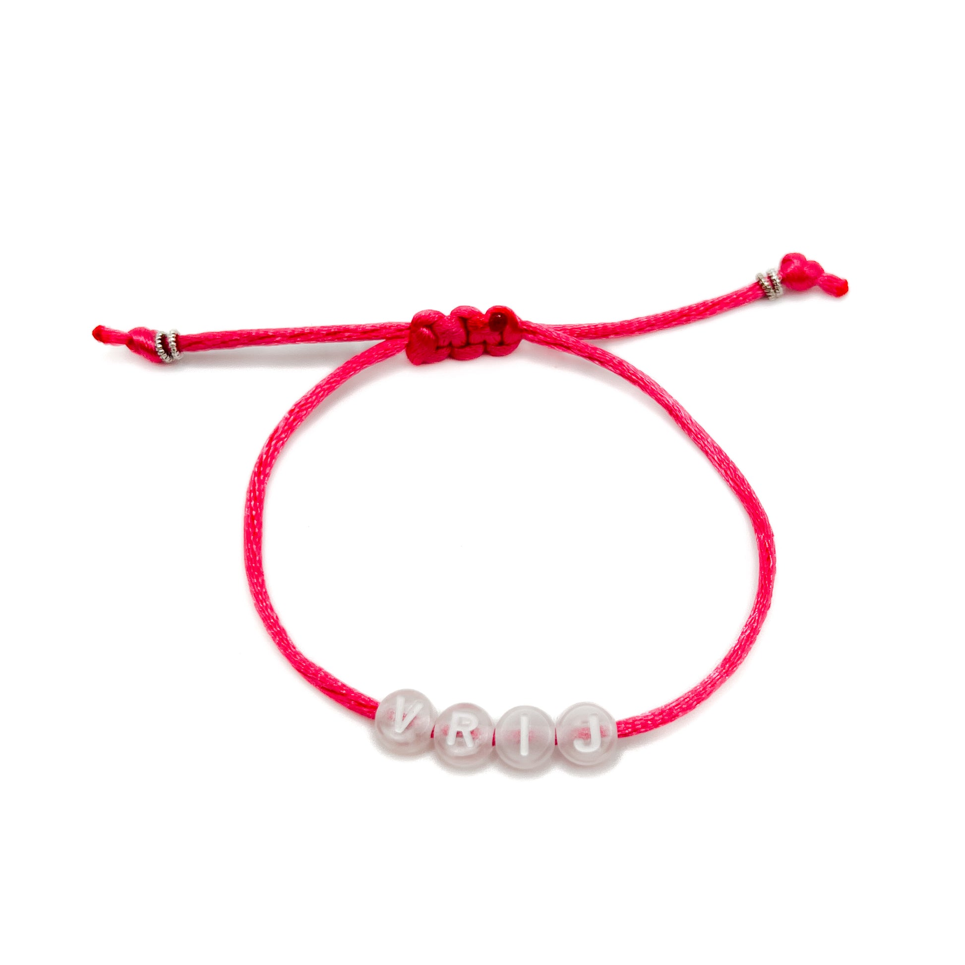 Armband is gemaakt met satijnen lint en beschikt over een schuifknoop. Zo past die met elke maat.